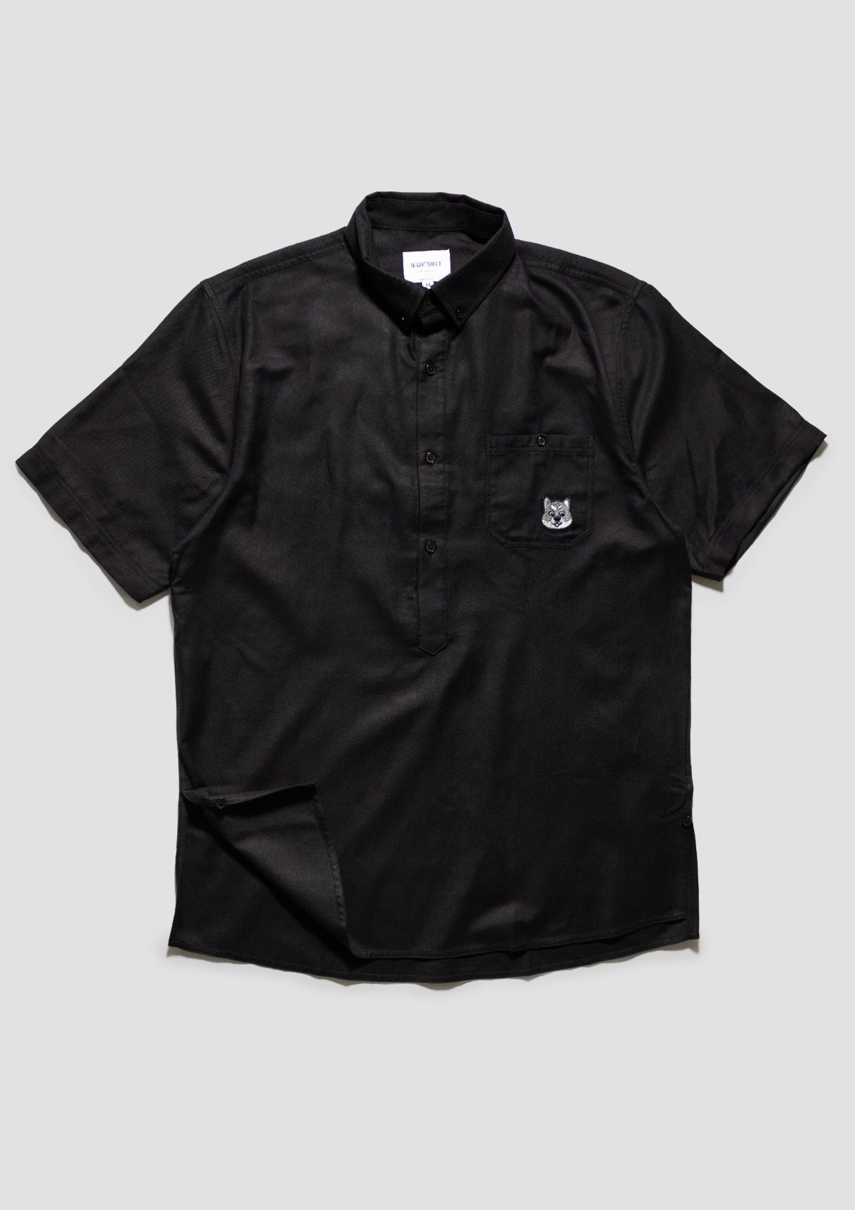 Half-placket button pullover short sleeve shirt inspired by the barong silhouette.
